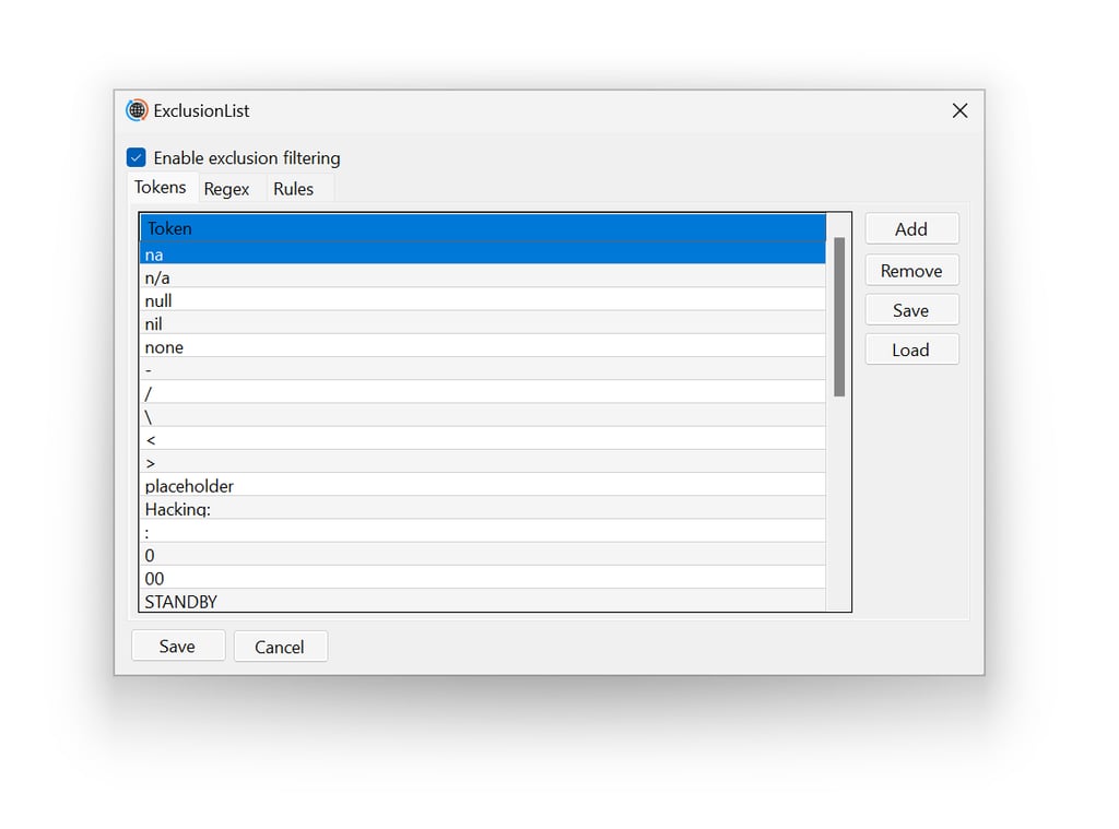 Texts are filtered before translation using configurable rules such as empty values, single characters, numbers, symbols, exact tokens, and custom regular expressions.